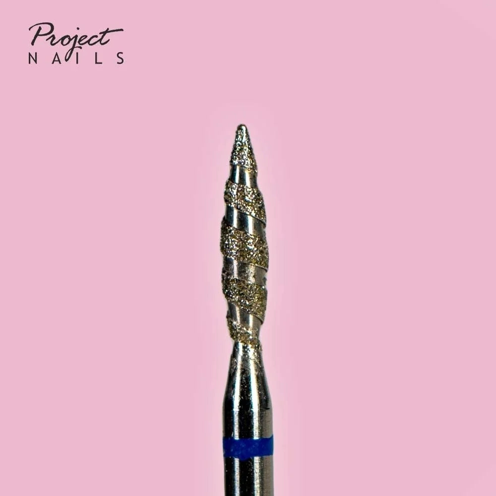 This flame-shaped piece, known as the "Tornado" and featuring a twisted diamond burr, is renowned for its effectiveness. It's ideally suited for detaching the proximal nail fold from the nail plate.