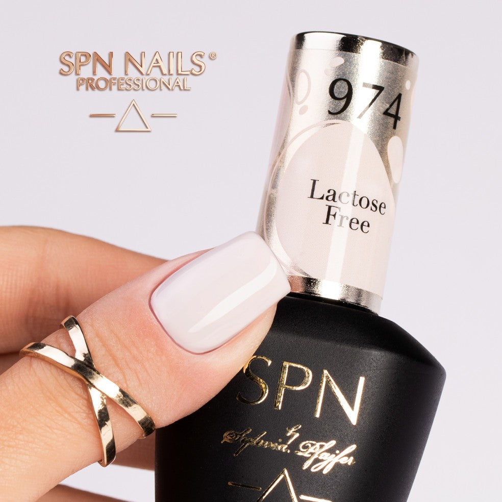 974 Lactose Free - milky hybrid gel polish in warm tones of beige and peach.