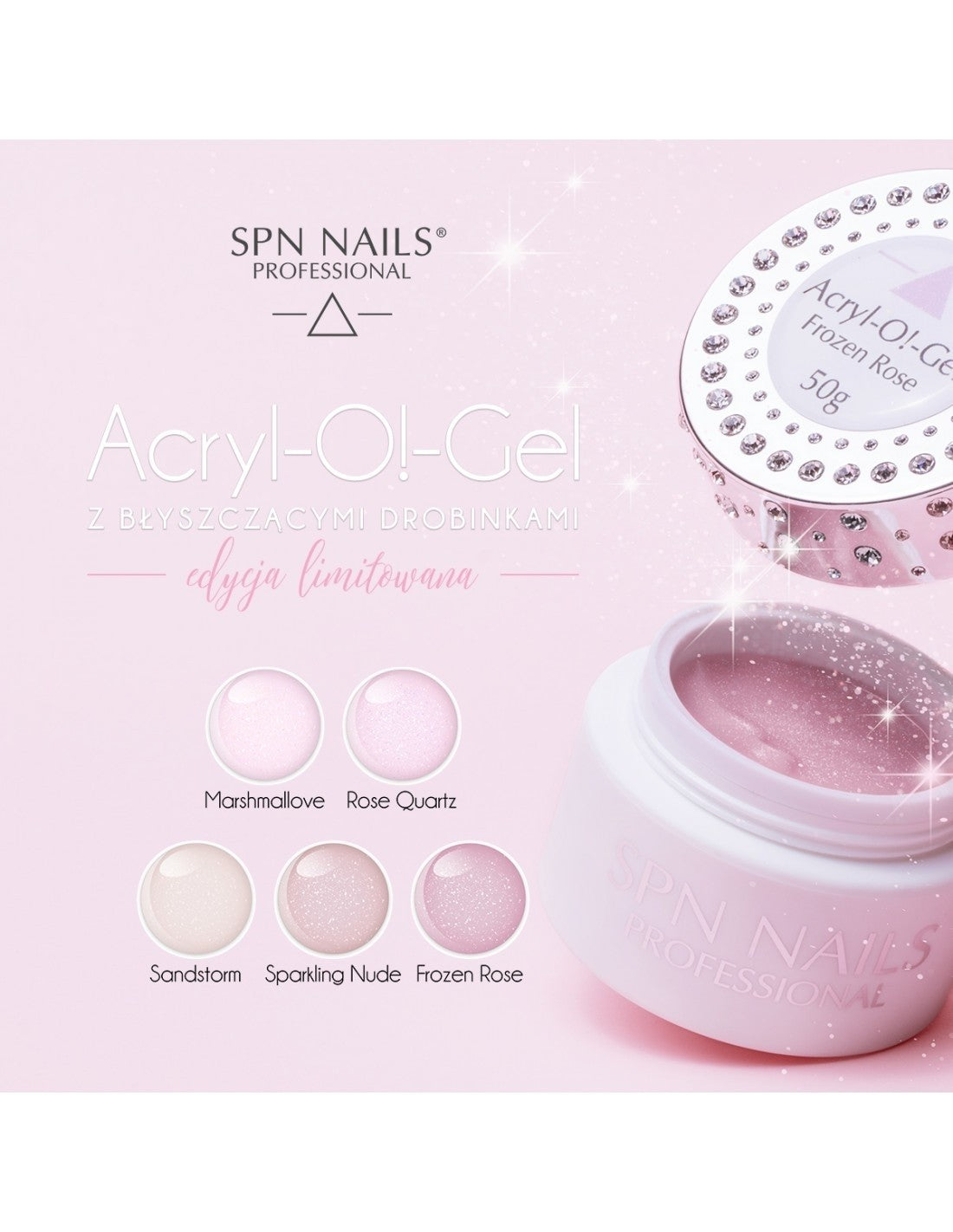 Acryl-O!-Gel is available in 7 beautiful classic colors: French White, Diamond Clear, Super Natural, Babyboomer, Cover Mask, Pink Pudding, Milky Rose and in 4 colors with shimmering particles: Frozen Rose, Marshmallove, Rose Quartz, Sparkling Nude.