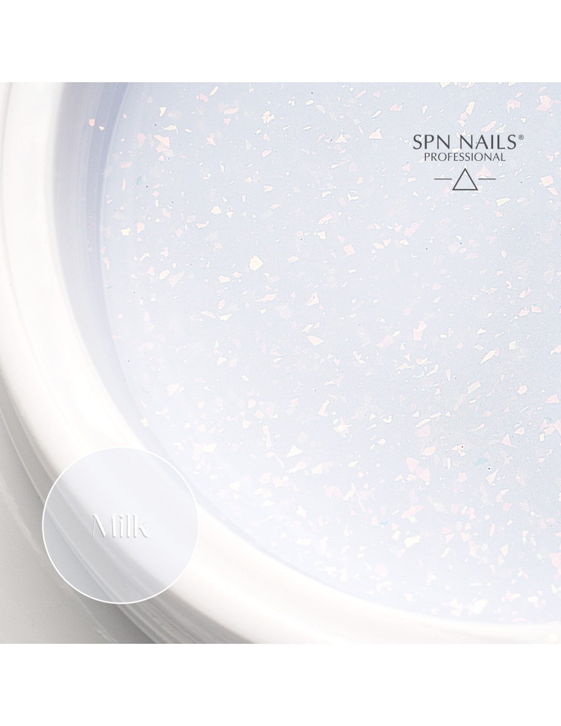 Milk Builder Shine Gel is a milky building gel filled with a million shimmering particles of holographic foil. It was designed with swift salon work in mind, aiming to achieve a spectacular effect in a very short time.