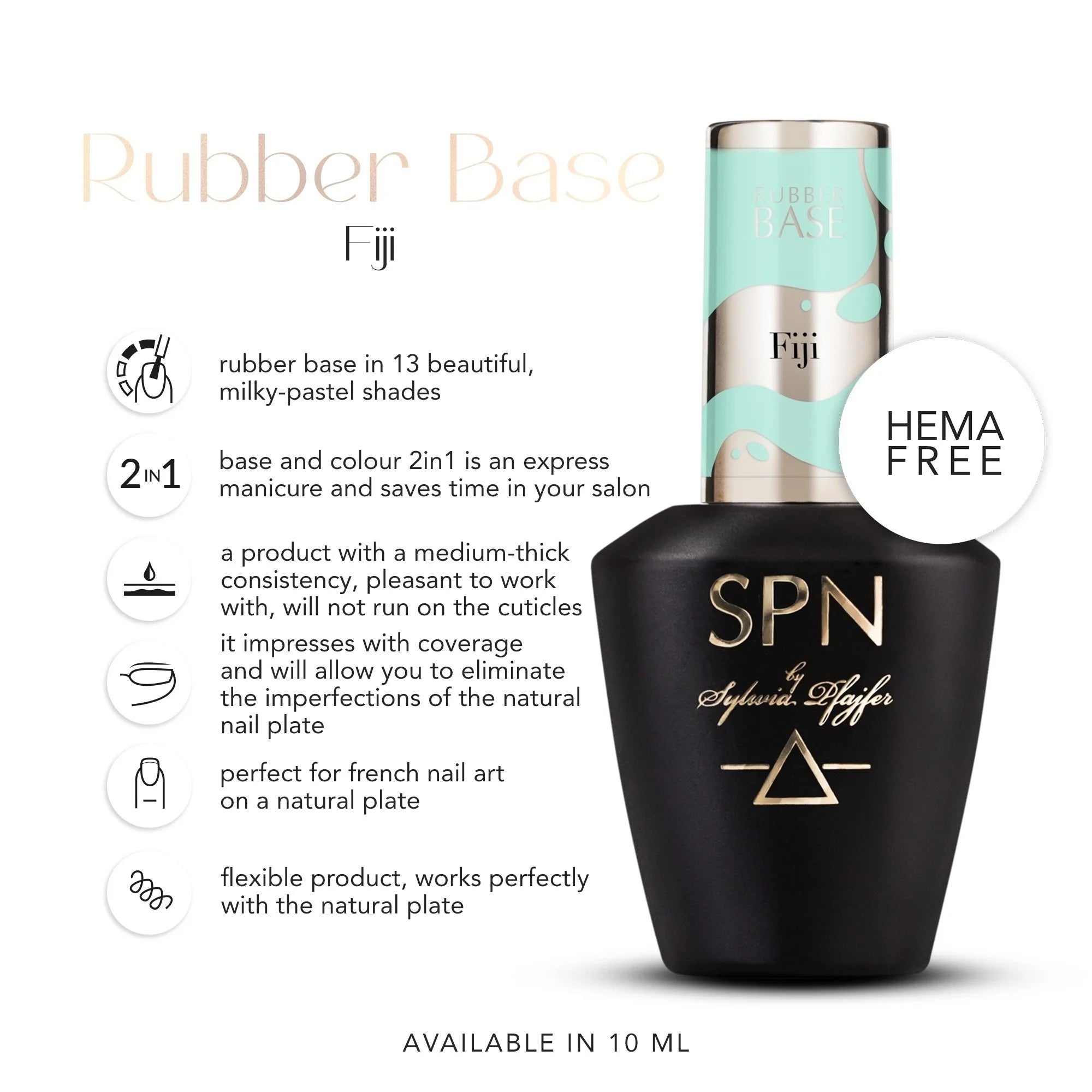 This is a 2-in-1 product - a flexible rubber base and colour, enclosed in one glass bottle of SPN Nails.