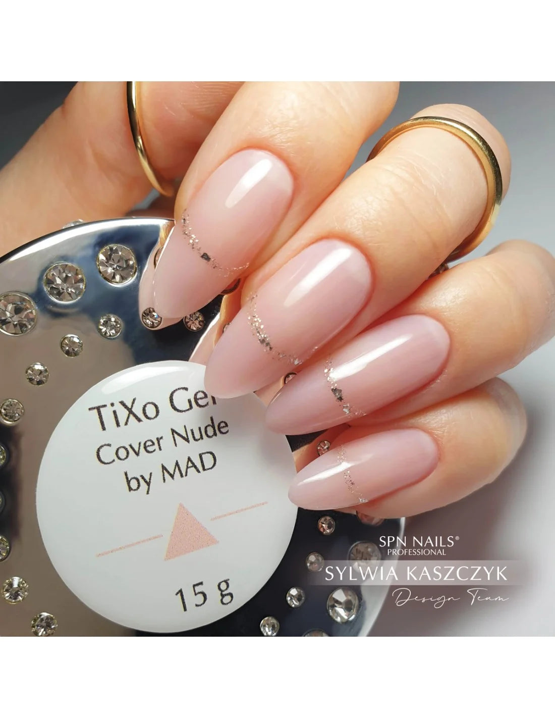 TiXo Gel Cover Nude by MAD is a building gel with thixotropy. This means that the gel in the package is very thick, but when applied to the nail or on a form, it changes its consistency to a more delicate and very plastic.